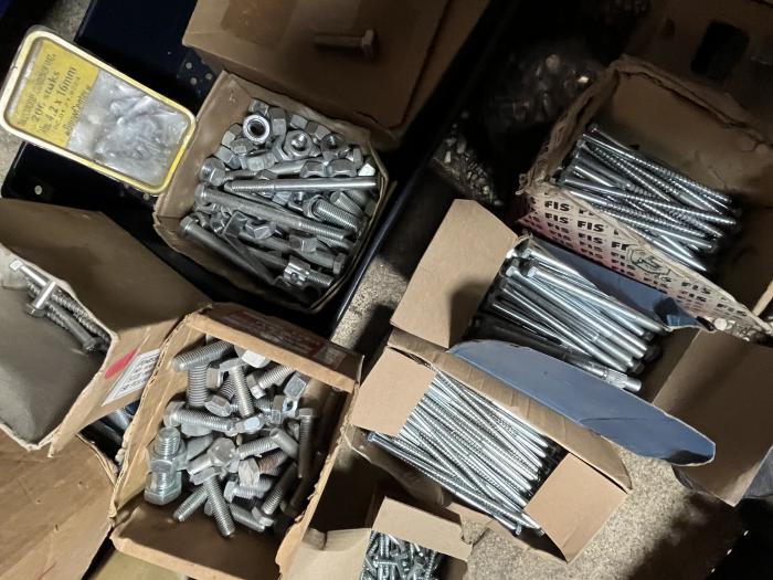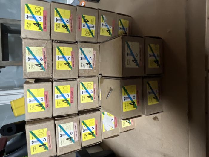 Partij met schroeven, bouten, slagpluggen en meer bevestigingsmaterialen