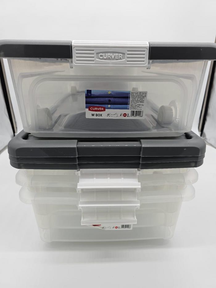 De bakken zijn transparant en voorzien van wieltjes en deksel.