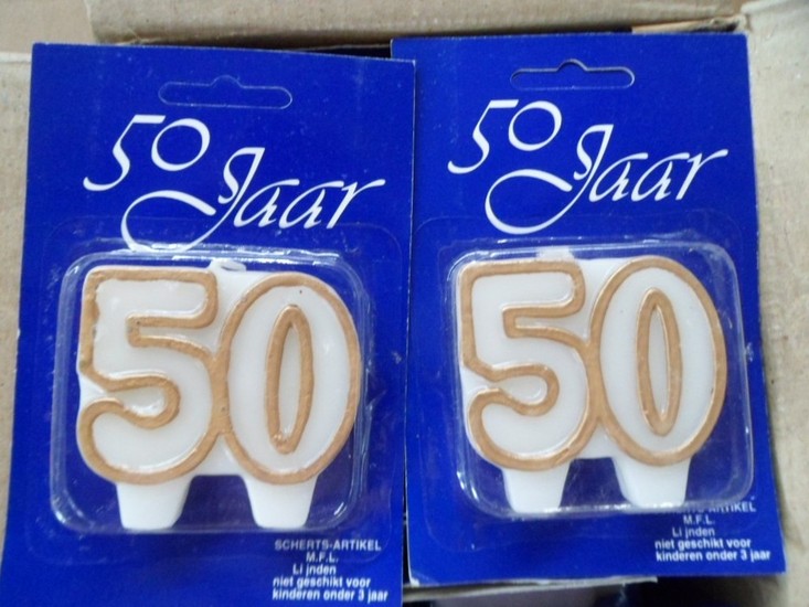 PARTIJ TAART KAARSJES 50 JAARAANTAL 24 STUKS