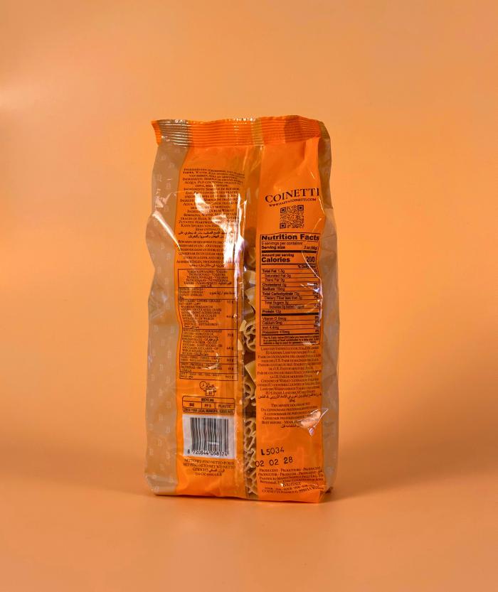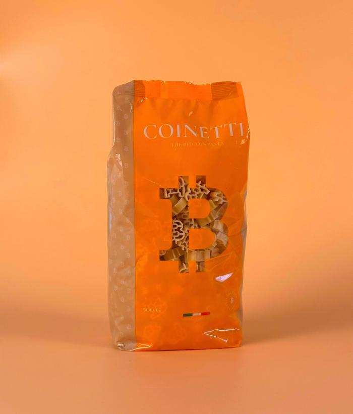 Eenmalige restpartij COINETTI Pasta in Bitcoin-vorm (500g), geproduceerd in Italiė.