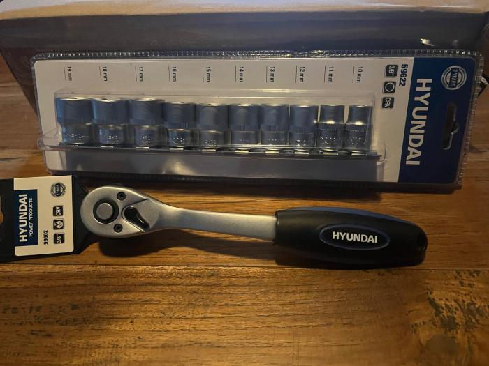 Hyundai dopsleutelset (10 delig+ratel) 20x Maten: 10 tot en met 19 mm