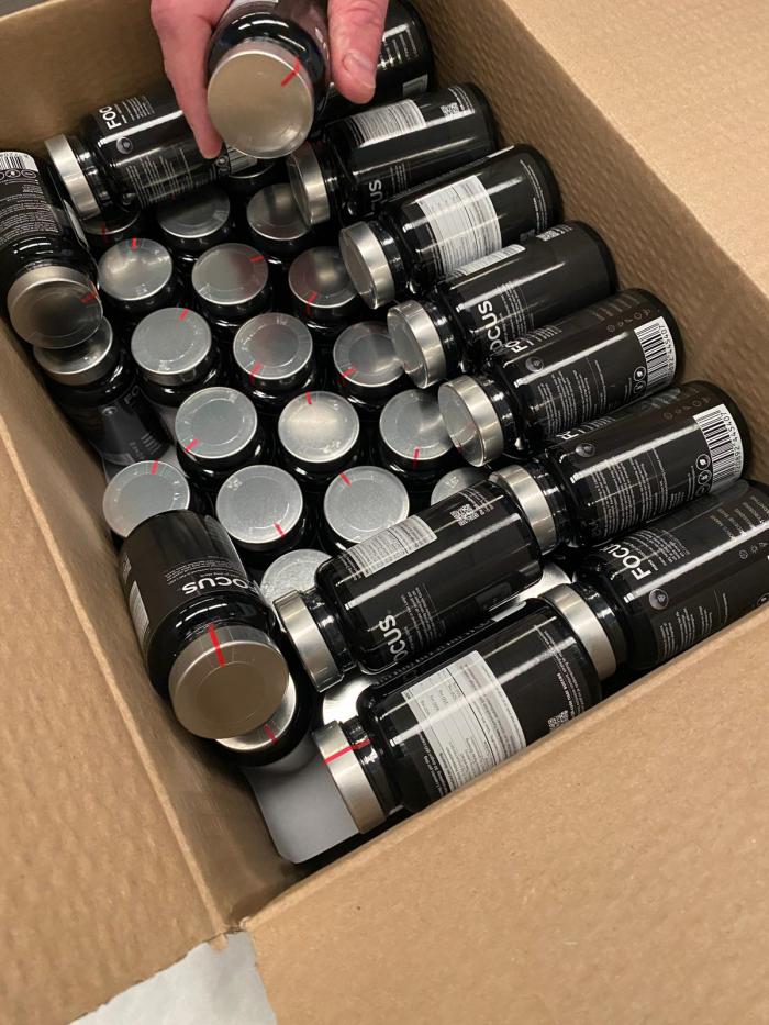 1.300 potten Focus & Sleep capsules, professioneel geproduceerd in UK. THT juni 2027.