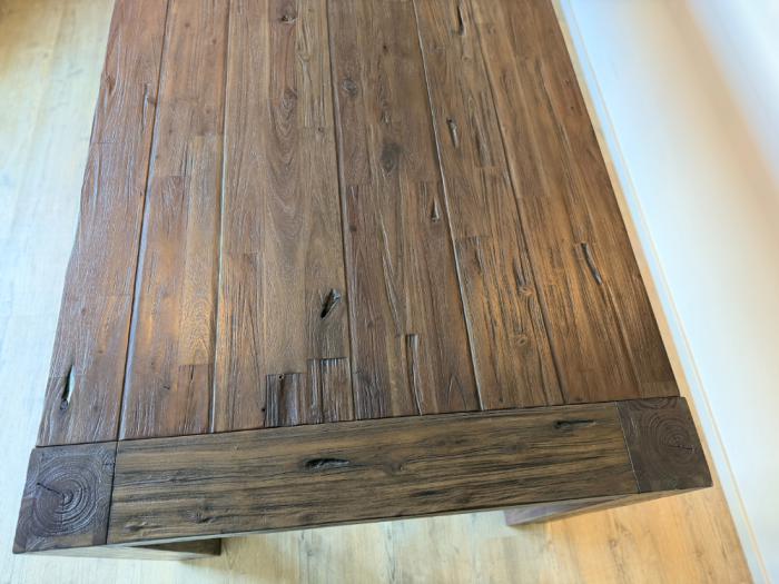 Dit zijn zware, kwalitatieve tafels van massief acaciahout die direct weggezet kunnen worden in de retail, outlet of projectinrichting.
