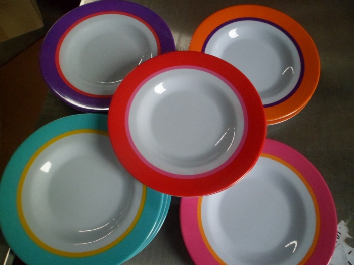 PARTIJ MELAMINE BORD IN DIVERSE KLEUREN AANTAL 40 STUKS PRIJS € 12,00