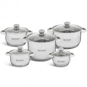 Prachtige 10-delige pannenset van hoge kwaliteit. Een set gemaakt van hoogwaardig roestvrij staal. Product gerenommeerde merk Edënbërg . Dankzij de speciale bodem wordt de warmte snel verdeeld, waardoor je energie bespaart. In de pan zit een praktische maataanduiding voor gebruiksgemak.