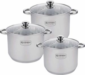 Prachtige 6-delige pannenset van hoge kwaliteit. Een set gemaakt van hoogwaardig roestvrij staal. Product gerenommeerde merk Edënbërg . Dankzij de speciale bodem wordt de warmte snel verdeeld, waardoor je energie bespaart. In de pan zit een praktische maataanduiding voor gebruiksgemak.