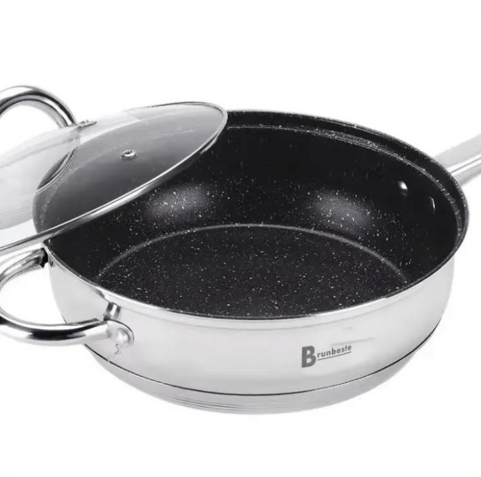 Sauteerpan (marmercoating) met glazen deksel: inhoud 3,0 liter, 24 Χ 7,5 cm