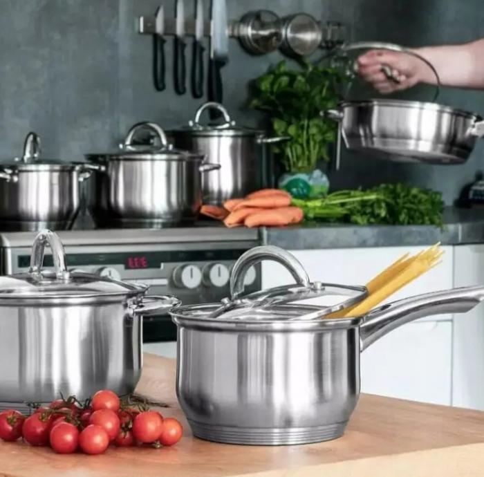 Steelpan met glazen deksel: inhoud 2,0 liter, 16 Χ 10,5 cm