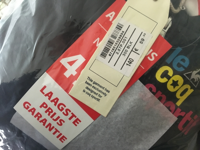 Nieuw kleding, veel Le Coq Sportif en Athlete. Kleding voor mannen, dames en kinderen. Verschillende maten van XS tot XL(veel M en L). Een tas vol kinderkleding van 50cm t/m 158/164cm 346 stuks in totaal !!!