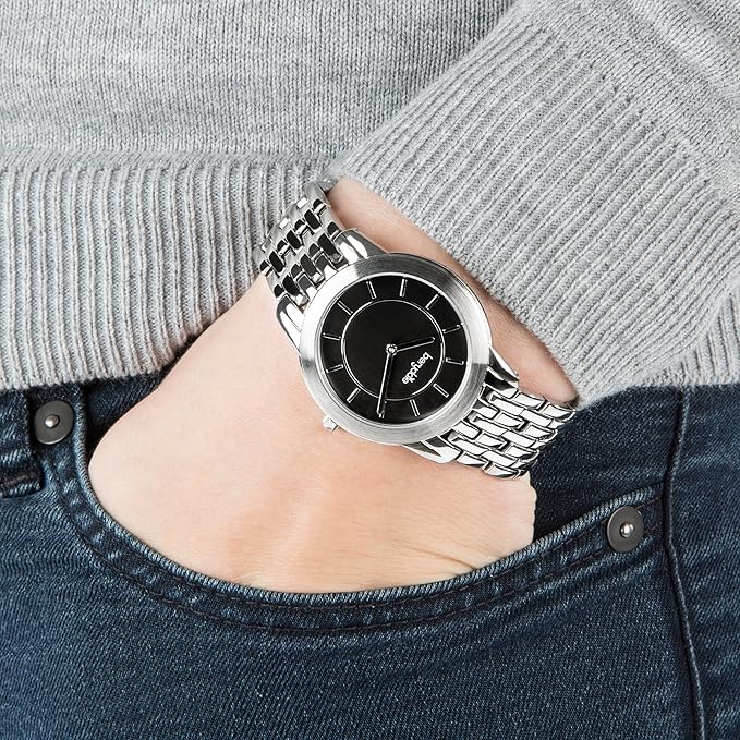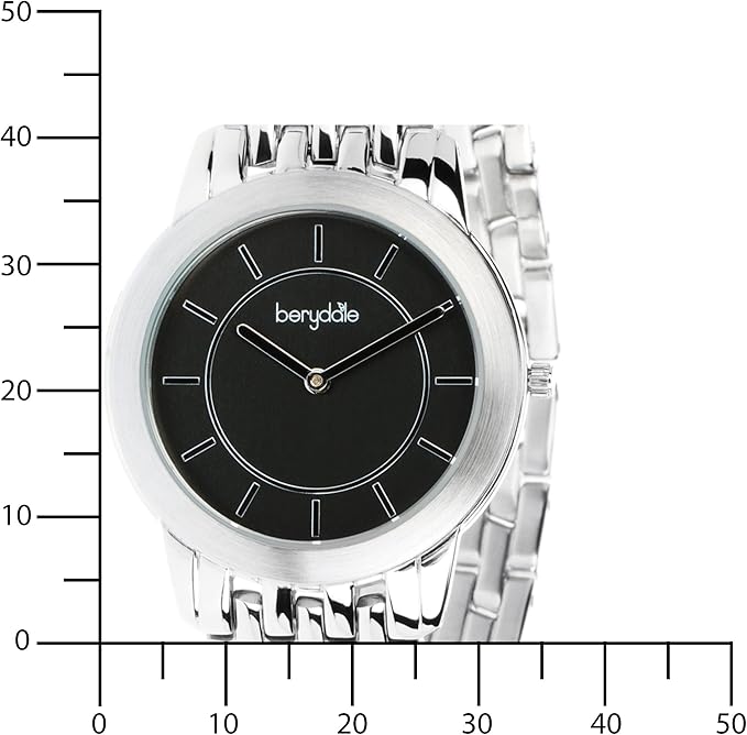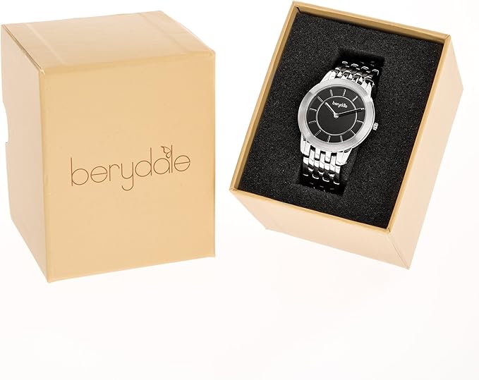 Productspecificaties Berydale Modelnummer BD702-2 Partnummer BD702-2 Vorm Rond Displaytype Analoog Soort sluiting Vouwsluiting Diameter behuizing 35 millimeter Dikte behuizing 7 millimeter Bandmateriaal Roestvrij staal Bandbreedte 18 millimeter Bandkleur zwart Kleur wijzerplaat Zwart Gewicht 80 g Uurwerk Kwarts Waterbestendigheid 3 bar