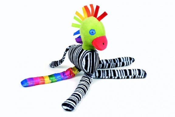 Super leuke knuffel, een mix tussen een zebra en een papegaai.