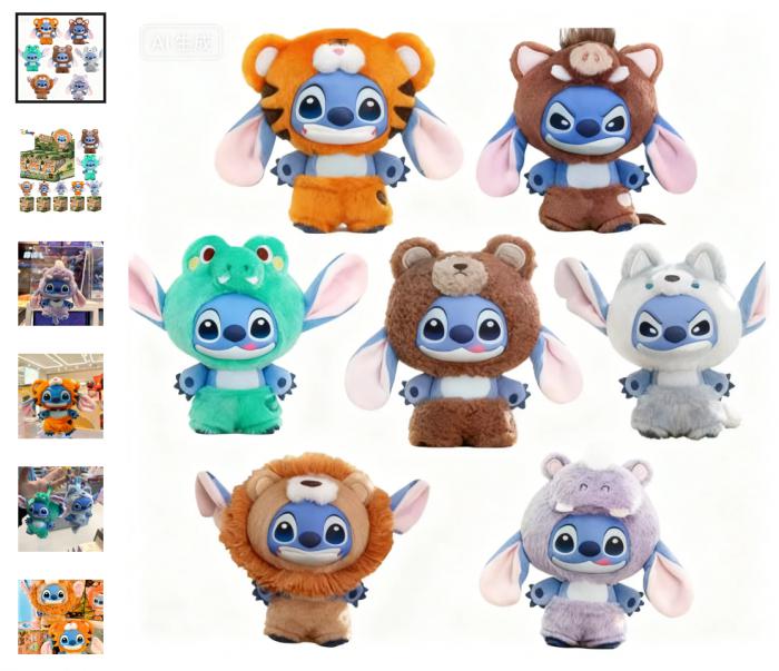 Partij van 50 stuks voor €449,-: Ideaal voor groothandel of voor grote evenementen, met diverse variaties van de Stitch Animal Series Blind Box Pendants.