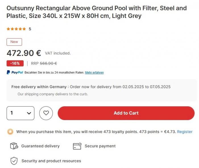 1 x Outsunny zwembad (340 x 215 x 80 cm)