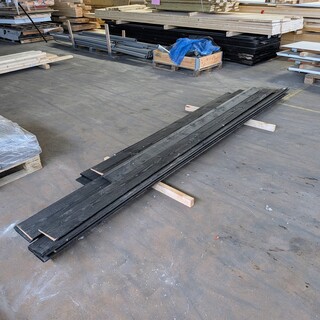 15x Zweeds rabbat zwart zwart, Douglas, Max. (lxbxd) 4010x190x25, gebruikt, Diverse lengtes, langste maat is opgegeven maat. Gespoten zwart