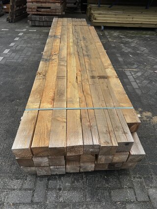 23x 400 cm, 1x 300 cm Douglas paal fijnbezaagd , 12 x 12 x 400 cm , Douglas hout, 12 x 12 x 400 cm, B-keus hout met robuust karakter