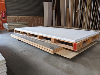 5x Divers plaatmateriaal, o.a. v.v. HPL, , , 2x ca. 250x122cm, dikte ca. 18mm3x ca. 207x138cm, dikte ca. 18mminclusief pallets, hal buiten