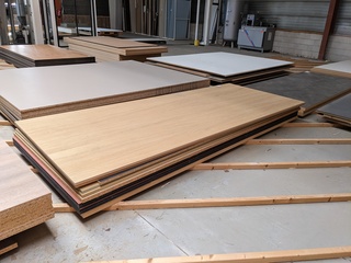 Diverse plaatmateriaal, , , , bestaande uit: 2x Multiplex 2500x1220x40mm, wit; 3x plaat 3050x1250x8mm