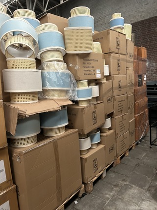 Ca. 159x Rotan lampenkap Crate & CarGo, diverse afmetingen, nieuw, 3 pallets, diverse maten. Let op! Zonder bevestigingsmateriaal en snoer.