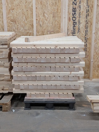 Ca. 160x Vurenhout balk, Vuren, lengte: 109,5 cm, breedte: 7 cm, dikte: 7 cm, nieuw, aantal: Ca. 160,zijn afgerond aan een kant