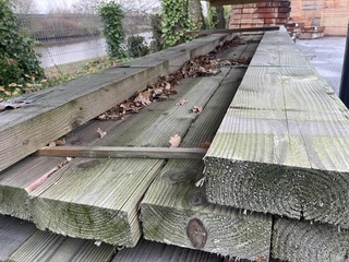 Ca. 100x Halfhouts, dakbeschot, Douglas, 400cm lang, Douglashout, nieuw, Halfhouts/dakbeschot planken, Douglas hout, 18x..