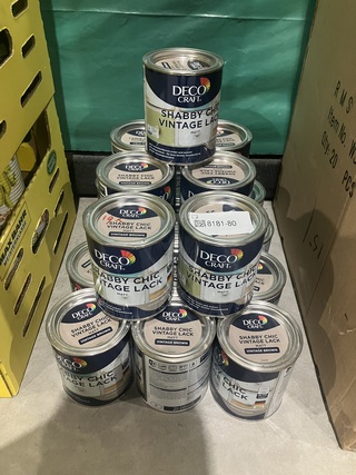 Ca. 18x Blikken shabby chic vintage lak, Decocraft, vintage brown, , 0,75 liter, nieuw, Voor binnen en buiten, waterverdunbaar, rendement ca 11m2