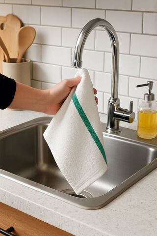 Ca. 200x Keuken/Vaatdoek - White/Green, , Nieuw, ,