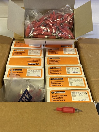 Ca. 2400x RCA-Connector Male , Hirschmann, rood, , , nieuw, 24 doosjes a 100 Stuks RCA-Connector Male ,