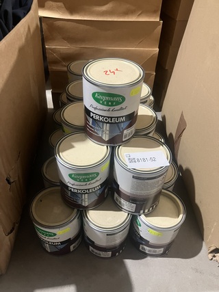 Ca. 24x Blikken perkoleum, Koopmans Verf, Dekkend, zomergeel, , 750 ml, nieuw, Perkoleum is een duurzaam elastisch, vochtregulerende, oplosmiddelarme verfbeits op basis van alkydhars en lijnolie
