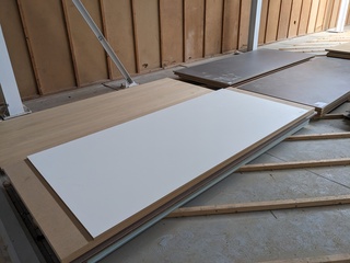 Ca. 24x MDF plaat v.v. HPL en fineer, , max ca. 306x131cm, dikte 10-40mm, , , hal buiten