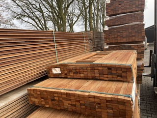 Ca. 293x Angelim Pedra Latten Geschaafd, 21x40mm, lengte 132/125cm, 161/155cm, Makka Kabbes, 21x40mm, lengte 132/125cm, 161/155cm, nieuw,