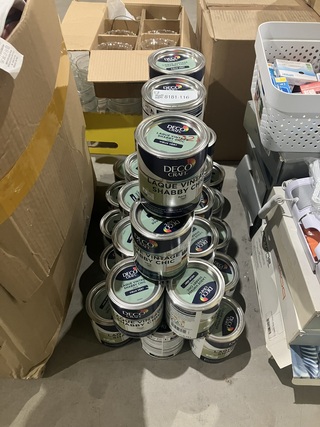 Ca. 32x Blikken shabby chic vintage lak Vieux Vert, mat groen, 750 ml, , , nieuw, Voor binnen en buiten, waterverdunbaar, rendement ca 11m2