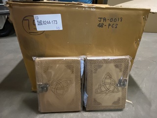Ca. 34x Handgemaakt leren notieboekje met eindeloze knoop, , 17,5 x 13 cm, nieuw, Deze authentieke notitieboekjes worden met de hand gemaakt in Jaipur, India. Ideaal om om bijvoorbeeld ideeën in op te schrijven of om te gebruiken als (dromen)dagboek. Het papier is gemaakt van 100% gerecycled katoen. Hierdoor wordt het dus niet geel na verloop van tijd. Het is milieubewust en duurzaam. Er komt geen boom aan te pas!,