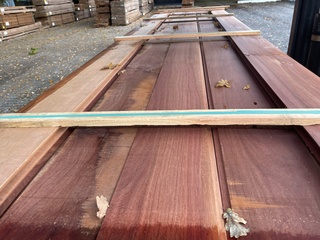 Ca. 37x Massaranduba damwand-/ paardenboxprofiel, 28x195mm, lengte 400cm , Massaranduba, 28x195mm, lengte 400cm, nieuw, Let op, het werkelijke pakket kan pinholes bevatten.