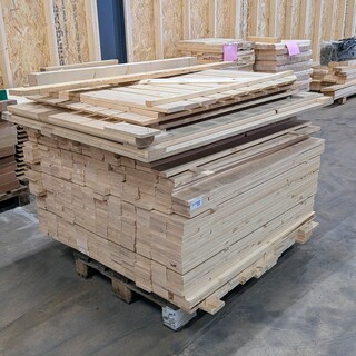 Ca. 380x Partij vurenhout, inclusief mal, Vuren, (lxbxd) ca. 1200x95x18, nieuw, pallethout, schoren en planken een partij inclusief mal. Kopmaat ca.: 18x95mm
