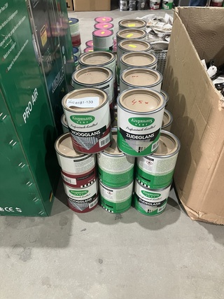 Ca. 45x Blikken verf, Koopmans Verf, , 750 ml, nieuw, 15x Hoogglans Savanna Bruin en 30x Zijdeglans Savanna bruin.