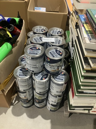 Ca. 57x Blikken shabby chic vintage lak, DecoCraft, Mat, antiek grijs, , 0,75 liter , nieuw, Voor binnen en buiten, waterverdunbaar, rendement ca 11m2