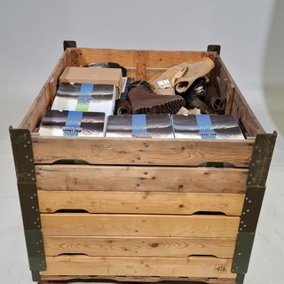 Persoonlijke uitrusting en kleding Defensie, Diverse maten, gebruikt, Bestaande uit ca. 36x palletbox ongesorteerde arti..