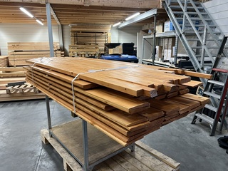 Ca. 71x Douglas tone Zweeds rabat, Douglas hout, , , Zweeds rabat 12/28x195mm, 33 st 278mm lang, 22 st 2280mm lang, 16 st 1780mm lang, 17 st regel 40x60mm 270mm lang,