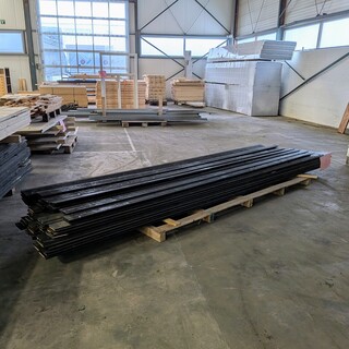 ca. 74x Zweeds rabat zwart, Vuren, lengte: 360-430( 80%), breedte: 14cm, dikte: 1,8cm, nieuw, partij schuttingplanken, zwart gespotenaantal:75aantal meter aan planken: ongeveer 315 meter,