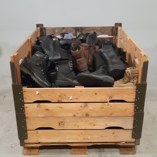 Persoonlijke uitrusting en kleding Defensie, Diverse maten, gebruikt, Bestaande uit ca. 38x palletbox ongesorteerde arti..