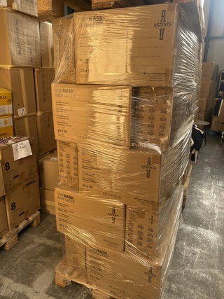 Ca. 80000x Mondkapje Akzenta, wit, Nieuw, Partij van circa 80.000 mondkapjes op twee pallets.