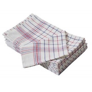 ca.144x Prof. Horeca Theedoek - Wit(Blauw Rood Gelijnd), , Nieuw