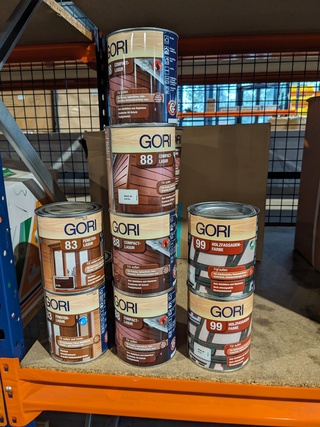ca.15x Blik verf Gori, , Nieuw, Bestaande uit 3x no 83 Palissander, 10x no 88, 2x no 99