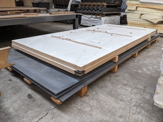 Diverse plaatmateriaal, , , , bestaande uit: 2x Multiplex 2500x1220x40mm, wit; 3x plaat 3050x1250x8mm