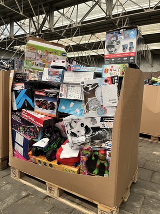 Mix pallet A-merk speelgoed w.o. Carrera, Clementoni, iDance, vtech, Nieuw, showroom modellen en gebruikt. Niet compleet. Werking onbekend. Deze kavel bevat Bol.com retouren.