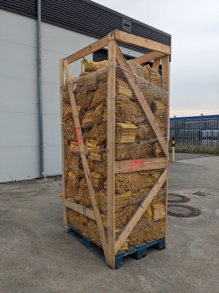 Pallet met netzakken aanmaakhout, Droog en schoon vuren/ grenen hout, 120 cm x 85 cm x 220 cm, Nieuw,