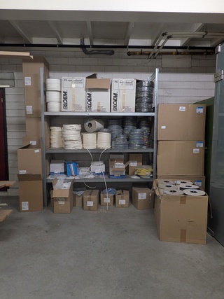Inhoud 4 meter stelling, , , , bestaande uit o.a. :diverse kitkokers, diverse kitworsten, spuitmonden, glasband, bescher..