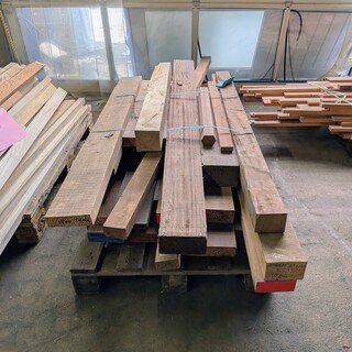 Partij divers hout, O.a. Merantie, eiken, iroko, grenen, amerikaans eiken beuken, (bxdxh) ca. 1200x800xca650, gebruikt, Diverse partij hout waaronder; vuren, meranti, iroko, grenen, beuken