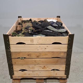 Persoonlijke uitrusting en kleding Defensie, Diverse maten, gebruikt, Bestaande uit ca. 35x palletbox ongesorteerde arti..