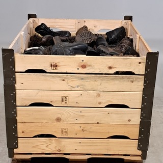 Persoonlijke uitrusting en kleding Defensie, Diverse maten, gebruikt, Bestaande uit ca. 31x palletbox ongesorteerde arti..